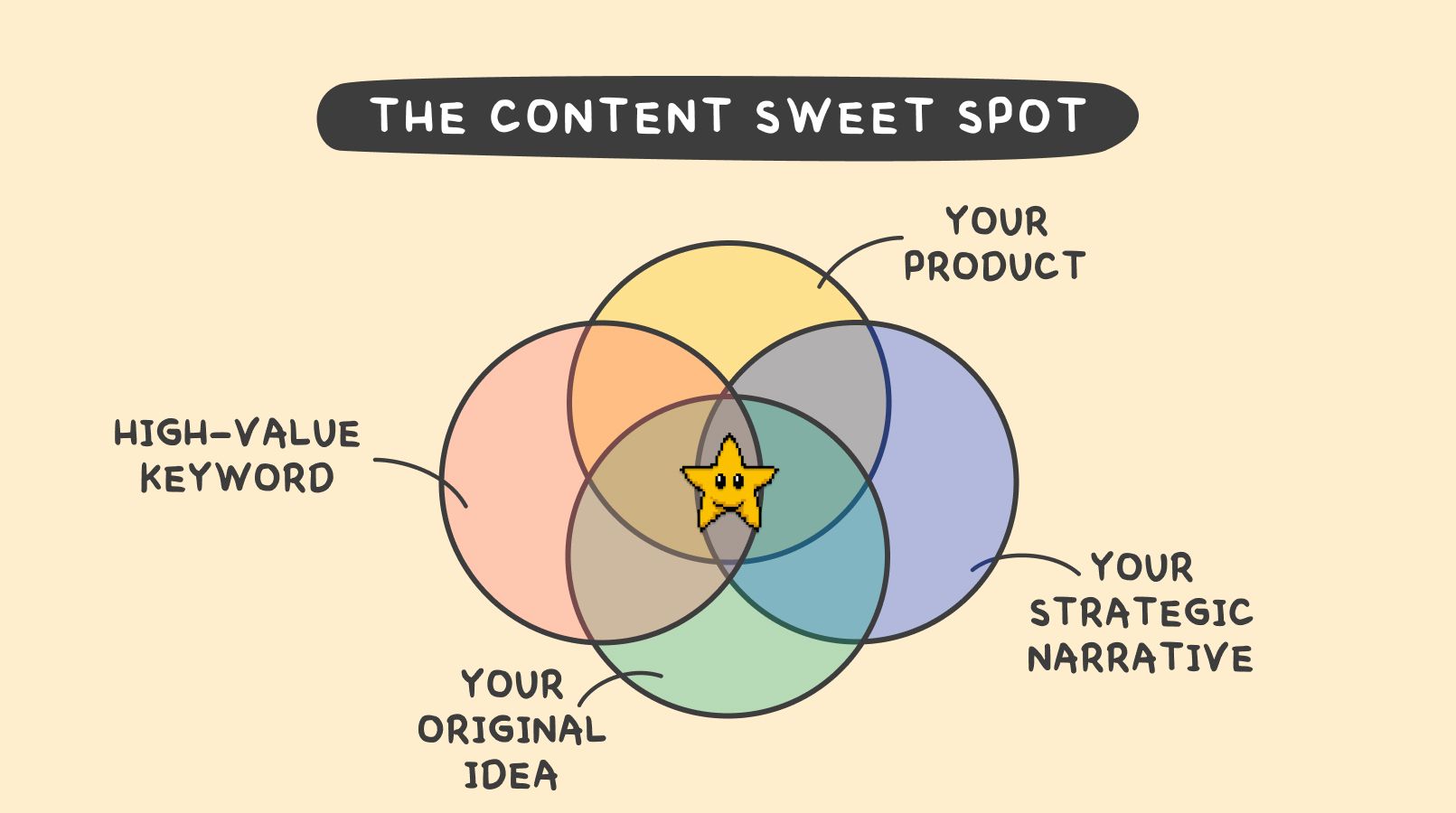 And just realizing that there was a better. That said, I never really finish learning or growing, so I'm sure in a year or two years from now, I might have iterated my content sweet spot and maybe we'll be back here talking about it then. But essentially, think of it like a Venn diagram, but with four circles.