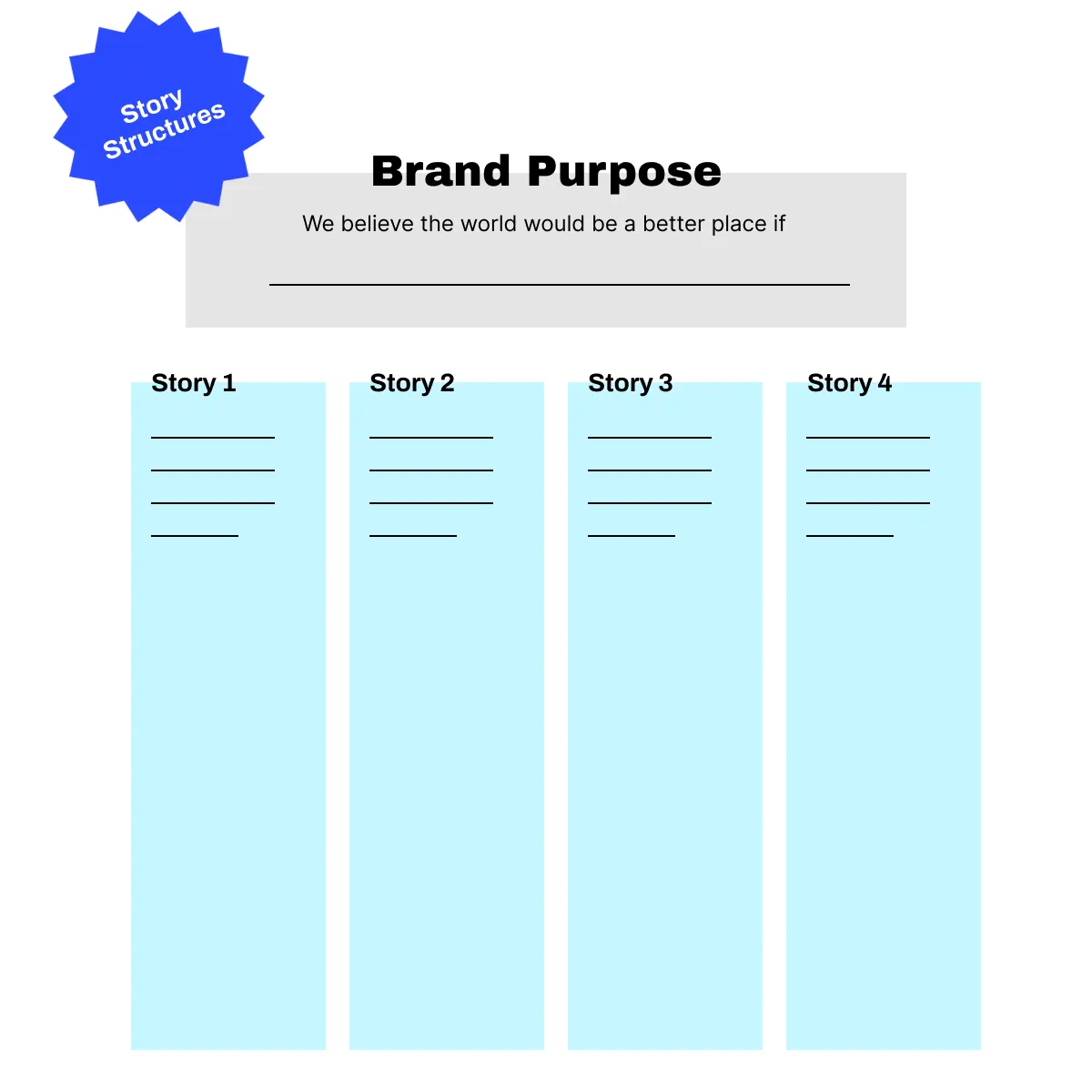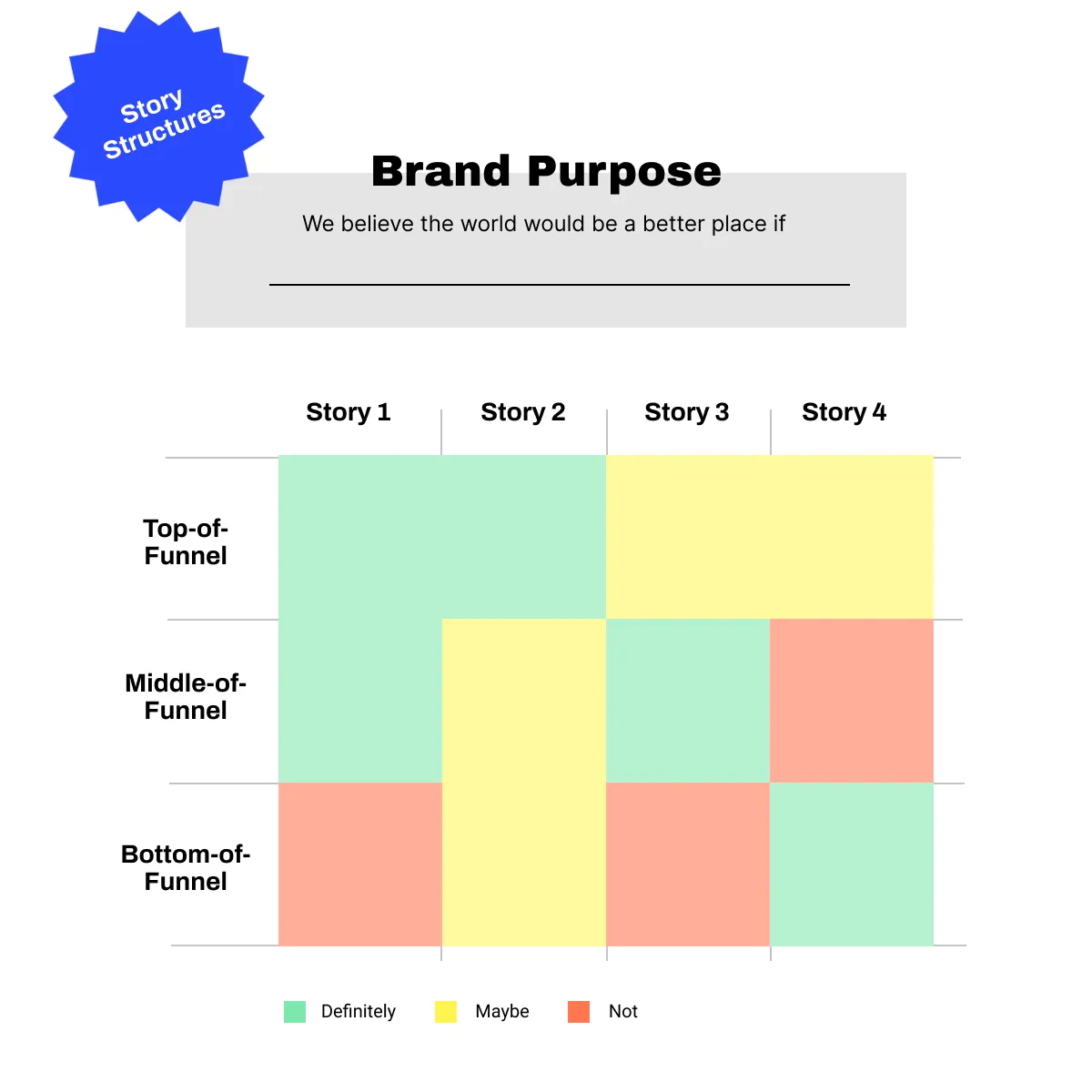 Kevan explains that once you have your brand purpose and story structures, you'll have a setup like below: